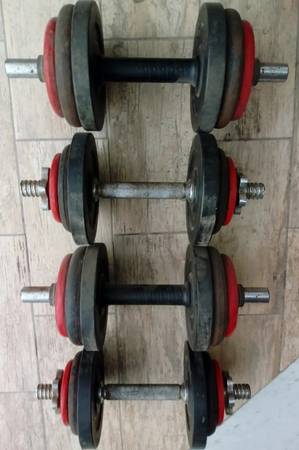 LEGGERE CON ATTENZIONE. Località: Catania (zona Corso delle Province). 4 manubri con pesi da 0.5 a 2 kg per allenamento, palestra e fitness in buono stato, colore rosso, vendesi a 120 euro in totale...